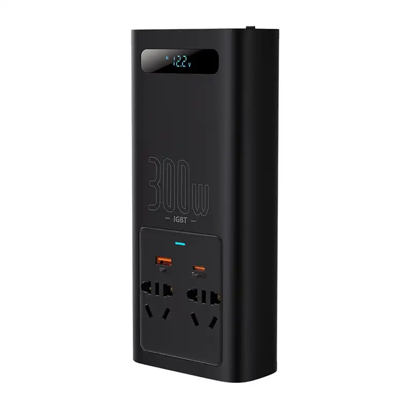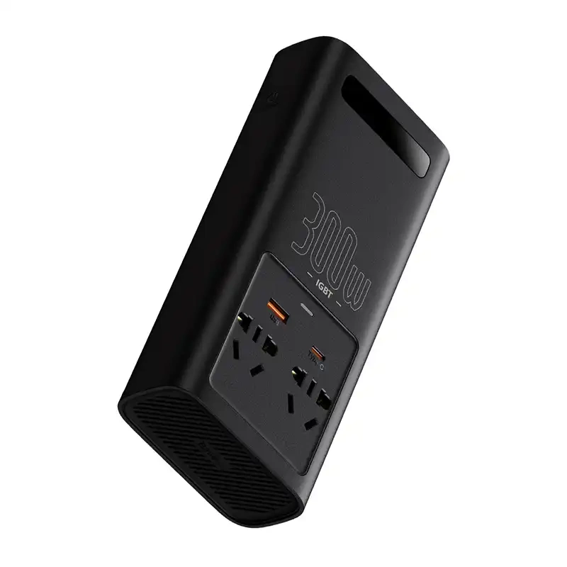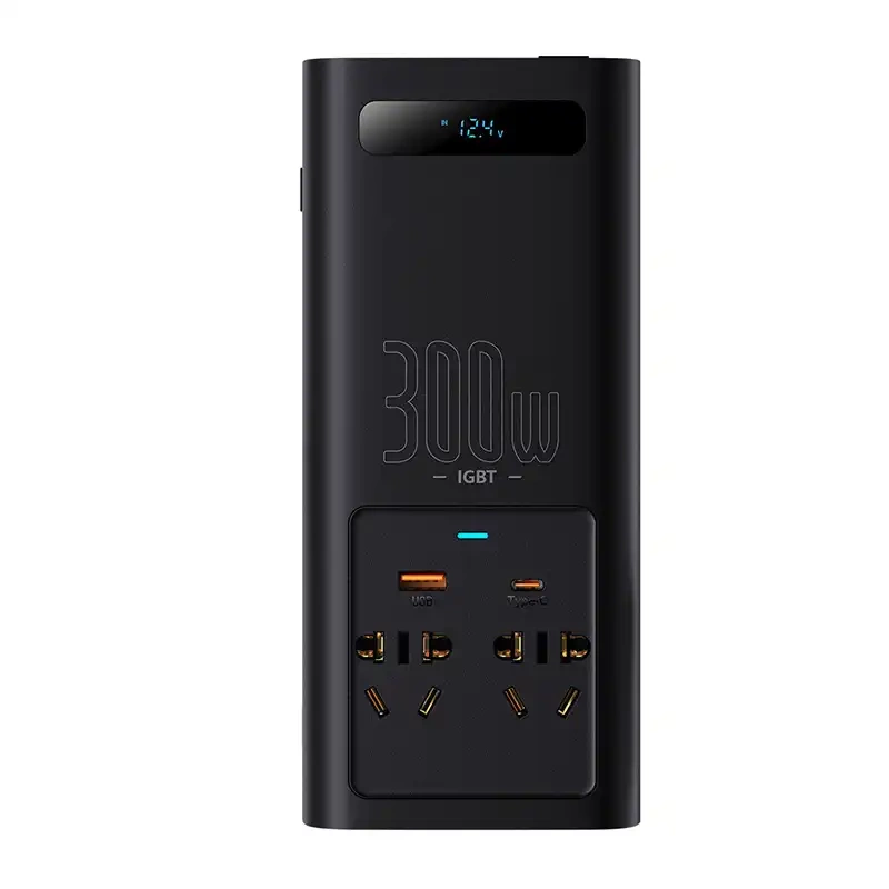 Baseus Car Power Inverter IGBT 300W/ 220V (C+U + Dual EU plug) with 12V clamp cables (0.40m) and Cigarette Lighter Socket Cable (0.60m), Black (CGNB010101)