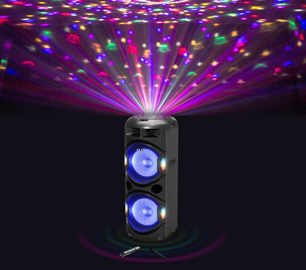 BOXE portabile AKAI, compact 2.0, RMS 350W, Micro SD card, microfon wireless, Bluetooth, conector Bluetooth, USB, negru, “DJ-Y5L” (timbru verde 40.00 lei)